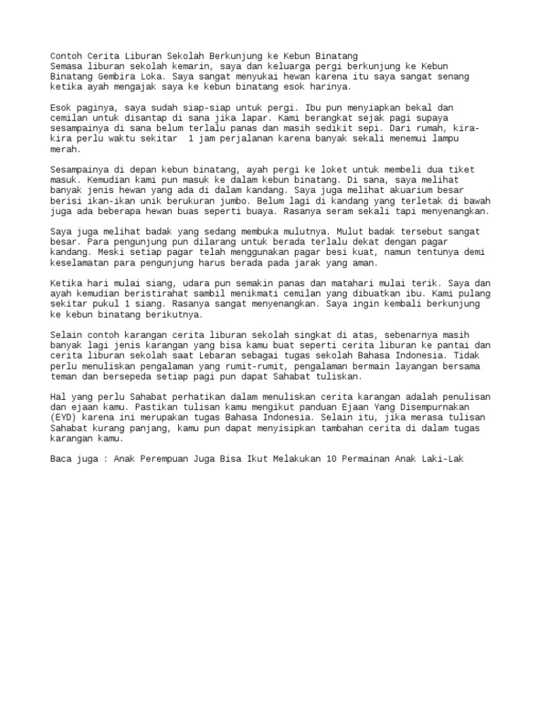 Contoh Karangan Liburan Sekolah Dirumah Tempat Wisata Indonesia. Kita akan mendapat tugas untuk membuat karangan tentang kegiatan kita selama.